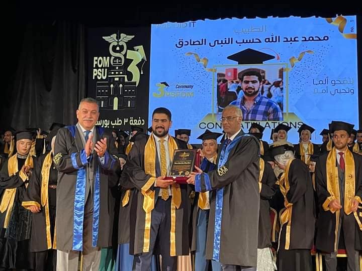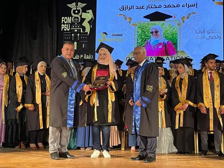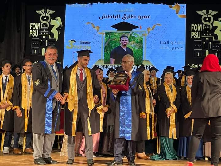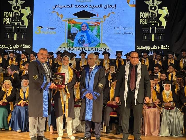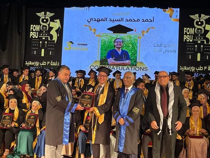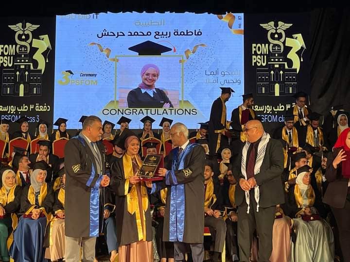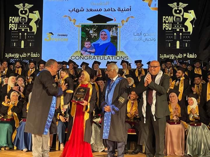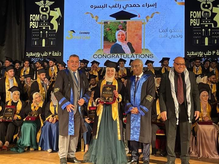 شهد السيد الأستاذ الدكتور / ايمن محمد إبراهيم رئيس جامعة بورسعيد فى حضور / الاستاذة الدكتورة / راوية رزق نائب رئيس الجامعة لشئون الدراسات العليا والبحوث والأستاذ الدكتور / عاطف علم الدين عضو مجلس الشيوخ المصري والاستاذة / سامية المصيلحى امين عام الجامعة حفل تخرج الدفعة الثالثة من كلية الطب البشرى وكان في استقبالهم الأستاذ الدكتور / خالد صبري عميد كلية الطب والسادة وكلاء كلية الطب البشرى