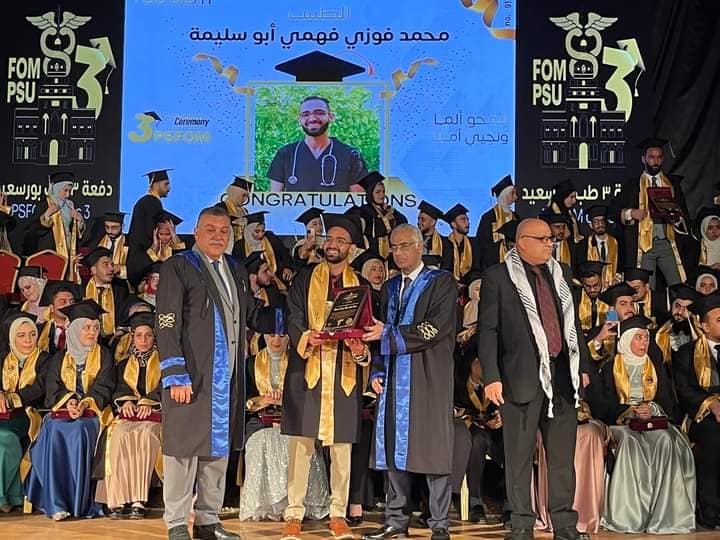 حضر الاحتفال الاستاذ / سليم التلوى مسئول شئون الجامعات والانشطة الطلابية بسفارة فلسطين بالقاهرة ونقب الاطباء ببورسعيد ومسؤلى التامين الصحى الشامل ووزارة الصحة ببورسعيد لفيف من السادة اولياء امور الطلاب