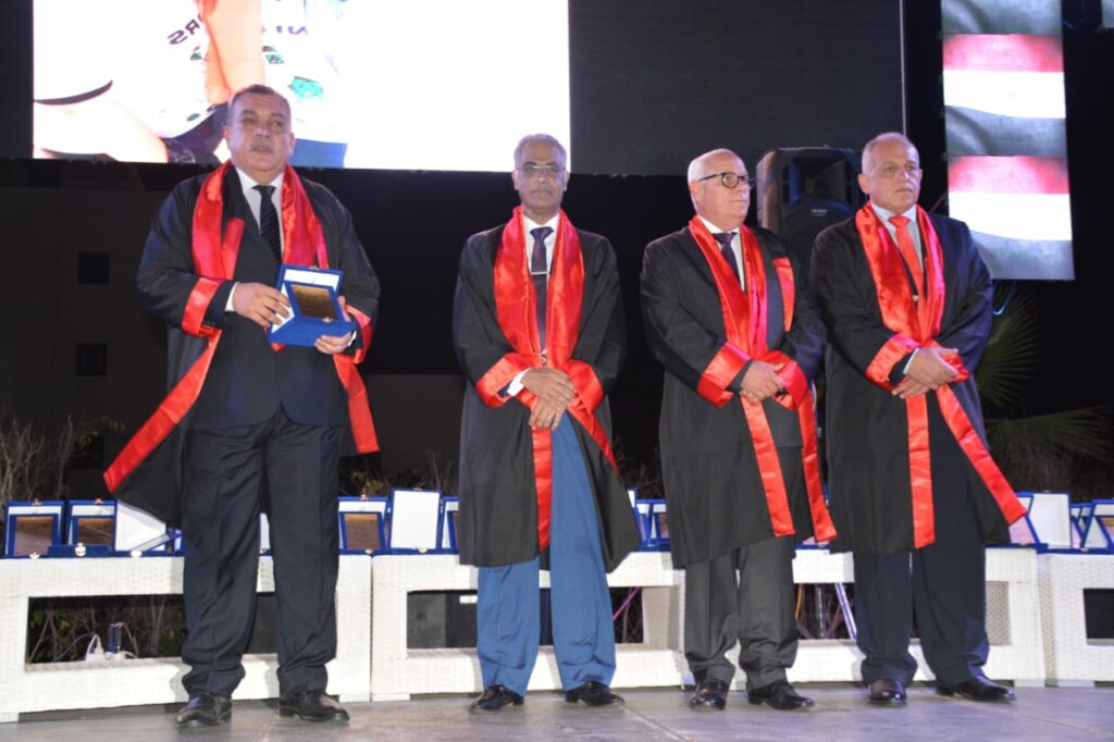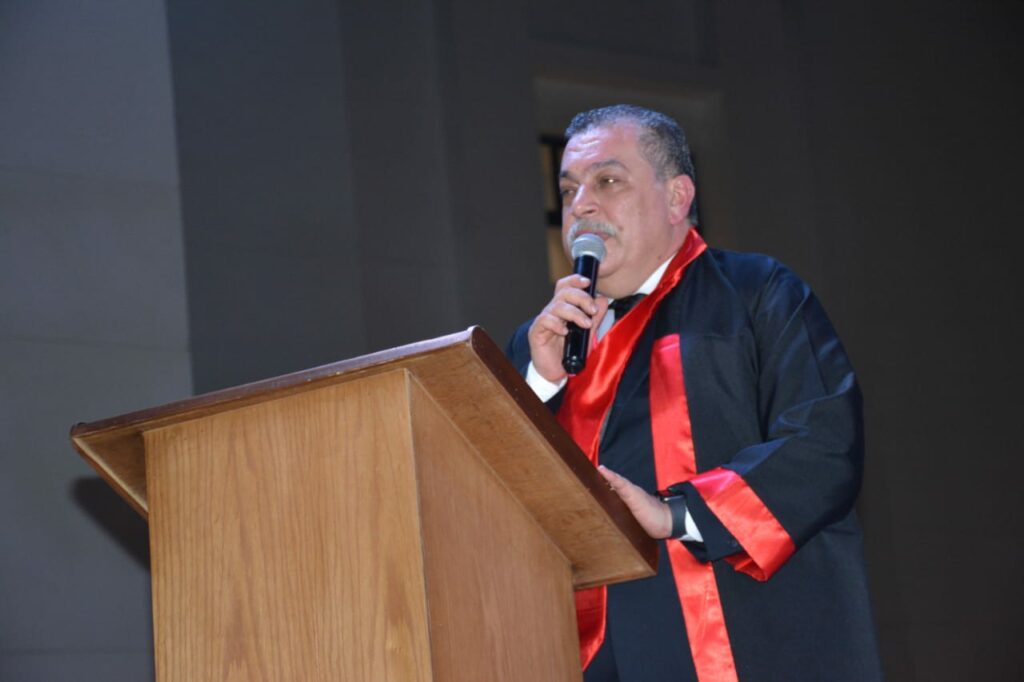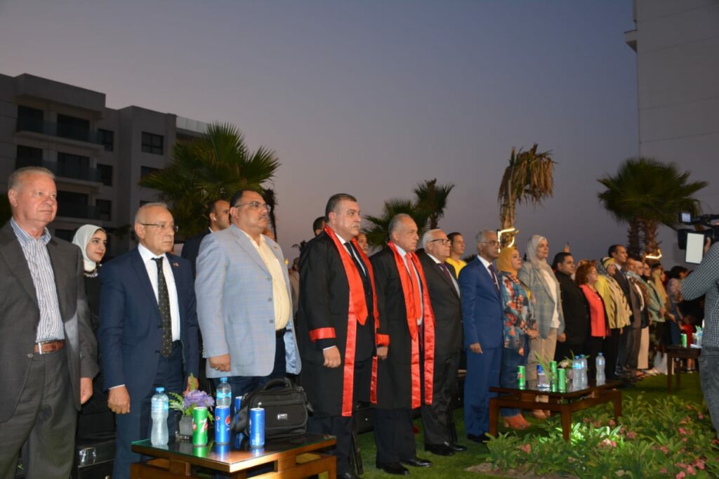 وبدأ الاحتفال بالسلام الجمهورى اعقبة ايات من الذكر الحكيم وفى كلمة للاستاذ الدكتور / خالد صبرى عميد كلية الطب رحب فيها بمعالى اللواء / محافظ بورسعيد والسيد الاستاذ الدكتور / رئيس الجامعة على تشريفهم بالحضور ودعهم الدائم لكلية الطب البشرى اعقب ذلك كلمة للاستاذ الدكتور / جلال سالم نائب رئيس الجامعة لشئون التعليم والطلاب مرحبا فيها بالحضور من معالى المحافظ والسيد الاستاذ الدكتور / رئيس الجامعة والذى شهدت فى عهدة الجامعة خطوات غير مسبوقة فى كل قطاعات وكليات الجامعة