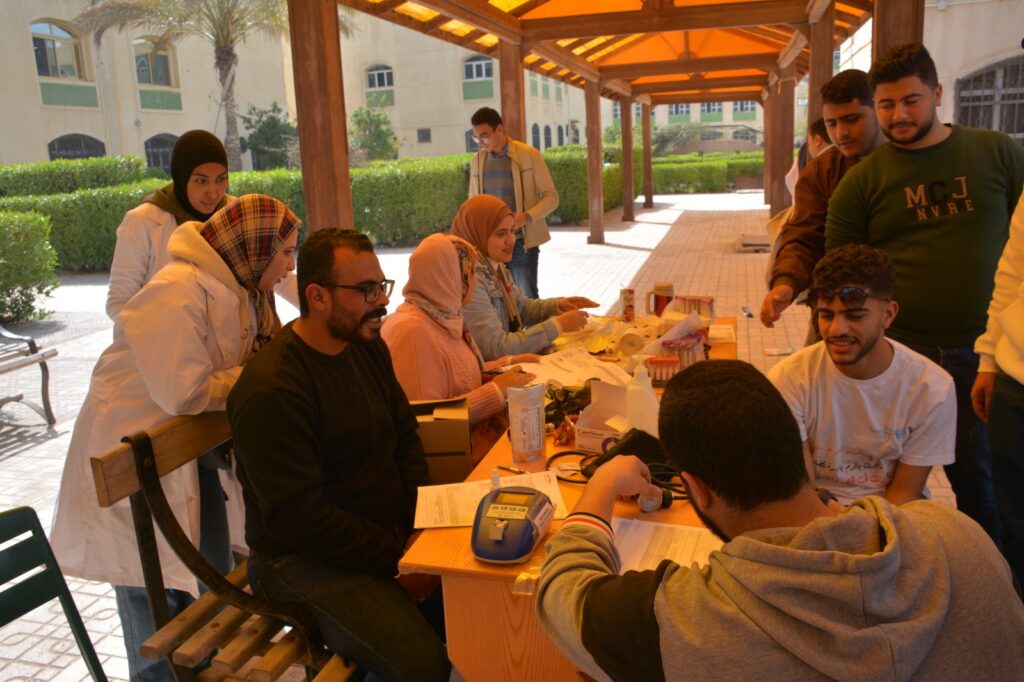 نظم طلاب كلية الطب حملة التبرع بالدم داخل الكلية وذلك تحت رعايو السيد الاستاذ الدكتور / خالد صبري سلامو عميد الكلية والسيد الاستاذ الدكتور / ايهاب غنيم وكيل الكلية لشئون خدمة المجتمع وتنمية البيئة بالكلية